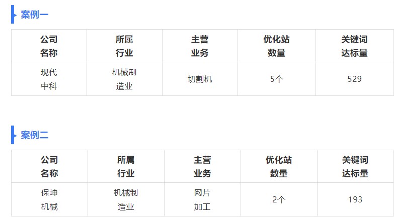 在興田科技另一位機械制造業客戶保坤機械的優化案例中,興田科技通過(guò)“優客通”智能(néng)營銷系統采用白帽SEO的優化方式進(jìn)行自然排名,通過(guò)後(hòu)期維護持續保持網站優化的效果,2個優化站關鍵詞均有50%以上排名穩定保持在百度PC端+移動端首頁,其他搜索引擎也有不錯的排名。
