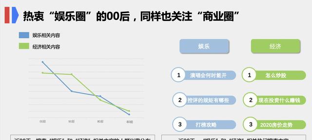 但這(zhè)屆年輕人熱衷于追星的同時,也展現出了對(duì)"商業圈"的極高熱情。百度搜索大數據顯示,00後(hòu)除了對(duì)演唱會何時開(kāi)、控評的規則、打榜攻略等娛樂内容保持關注外,對(duì)"怎麼(me)炒股""現在投資什麼(me)賺錢""2020房價走勢"等經(jīng)濟内容也有著(zhe)熱切的關注。而從年齡分布來看,00後(hòu)對(duì)于"娛樂"和"經(jīng)濟"的搜索積極性都(dōu)遠超其他年齡段,體現出這(zhè)屆00後(hòu)的多元性。