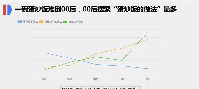 一場疫情讓不少年輕人開(kāi)始自己動手下廚。百度搜索大數據顯示,近90天,00後(hòu)對(duì)于各類食譜的搜索熱度均有不同程度的上漲。其中,他們對(duì)"蛋炒飯"有更高的興趣,遠超宮保雞丁和紅燒肉,看似再家常不過(guò)的蛋炒飯,對(duì)于00後(hòu)卻是難度不小。