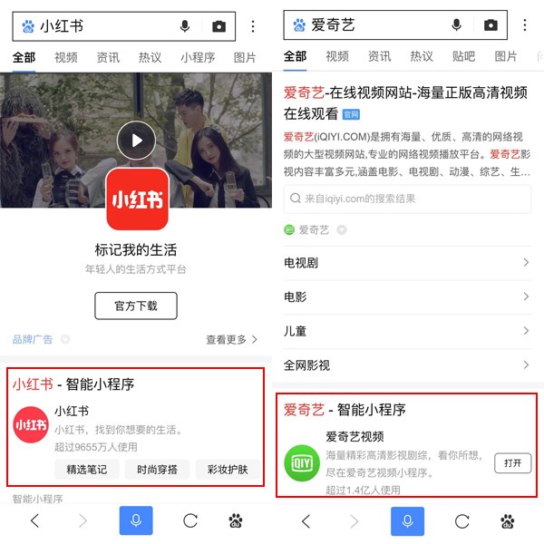 但是最近小編發(fā)現,過(guò)去以圖文爲主的信息流裡(lǐ)開(kāi)始出現很多智能(néng)小程序的内容,隻要搜索相關關鍵詞,就會出現對(duì)應的百度智能(néng)小程序。比如百度貼吧、小紅書、愛奇藝等。