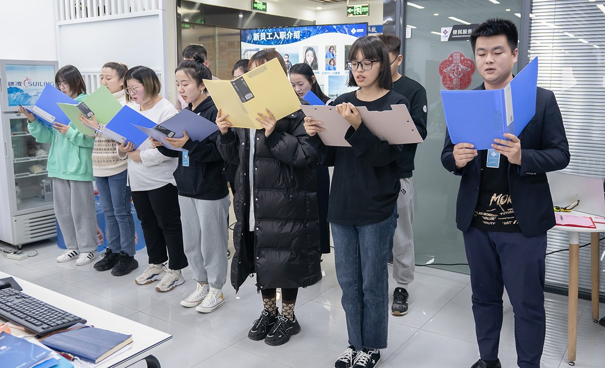 會議第二項,新員工入職宣誓儀式,在2021年的最後(hòu)一個月,共有11位小夥伴入職興田。