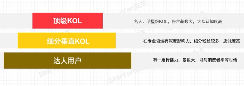 頂級KOL:名人、明星級KOL,粉絲基數大,大衆認知度高