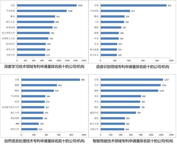 在語音識别和自然語言處理兩(liǎng)大領域,百度以933件和938件的專利申請量在排名榜中遙遙領先;